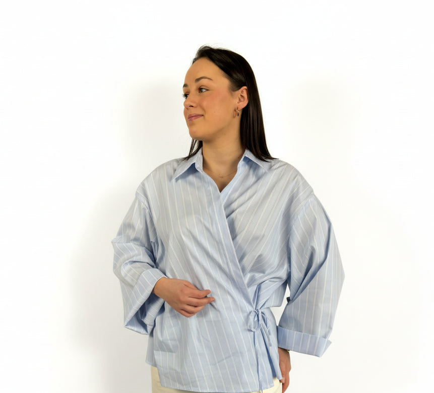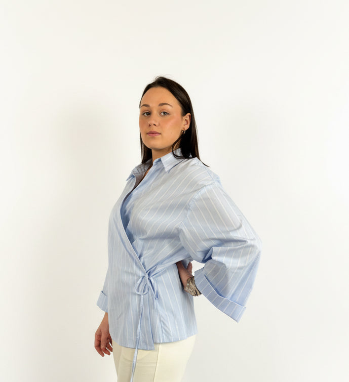 Het Eli hemd heeft een schuin strikdetail en wijde mouwen voor een trendy look.