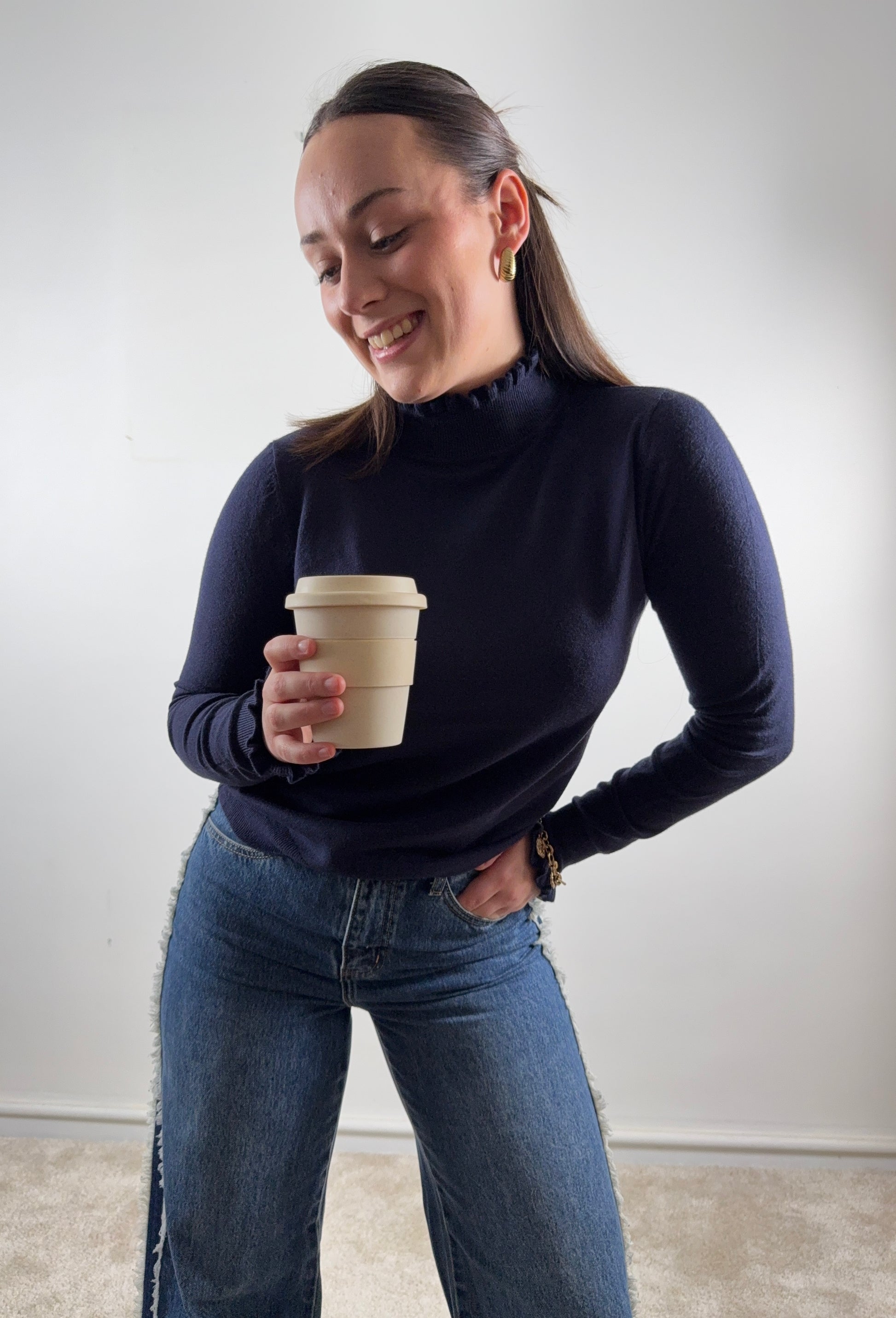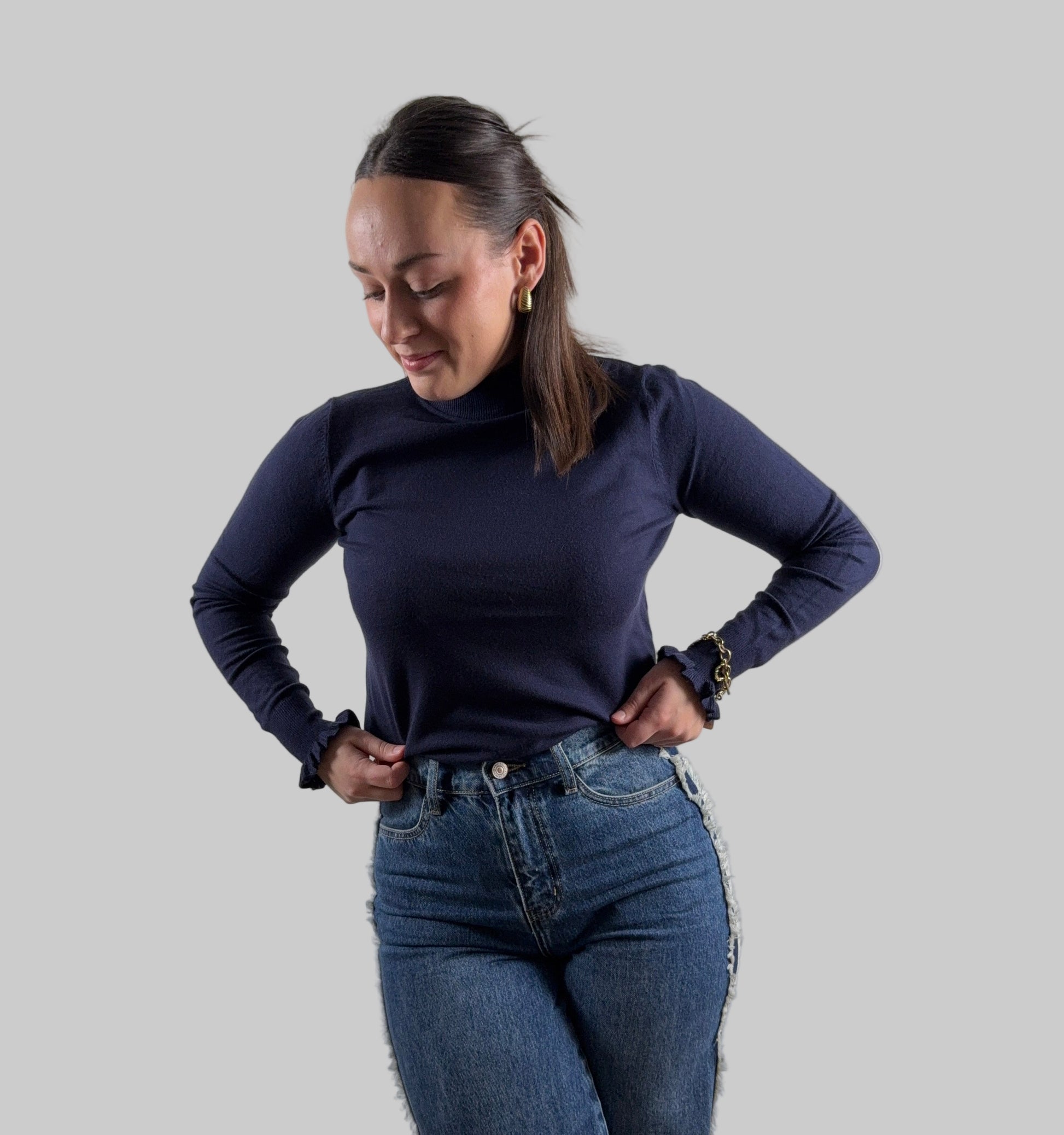 Romy is bovendien verkrijgbaar in twee kleuren, zodat je kunt kiezen welke tint het best bij jouw stijl past: Bordeaux en marineblauw. Perfect te combineren met onze Beau trui.