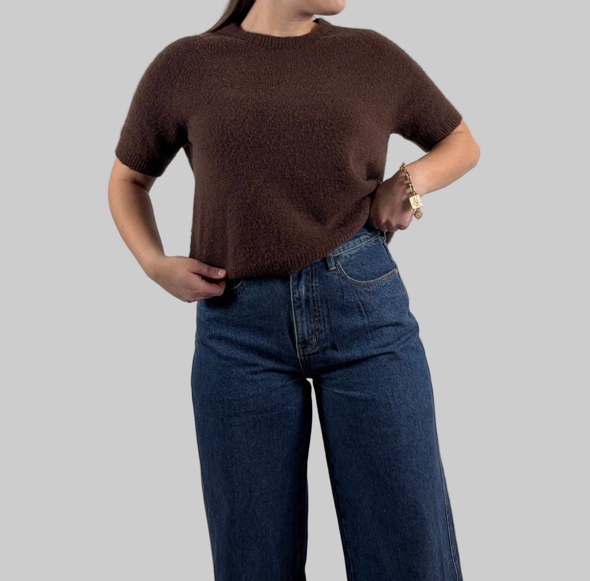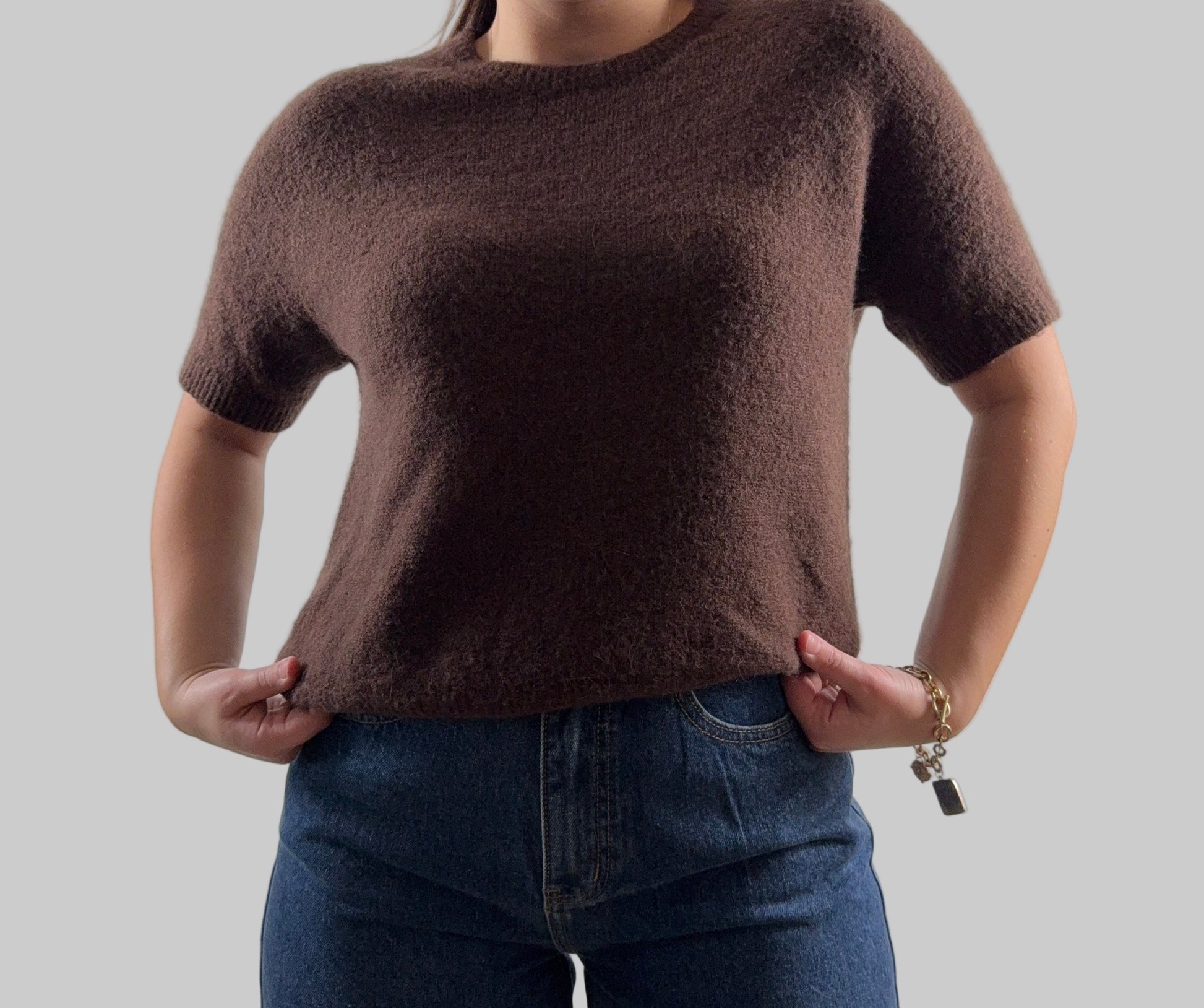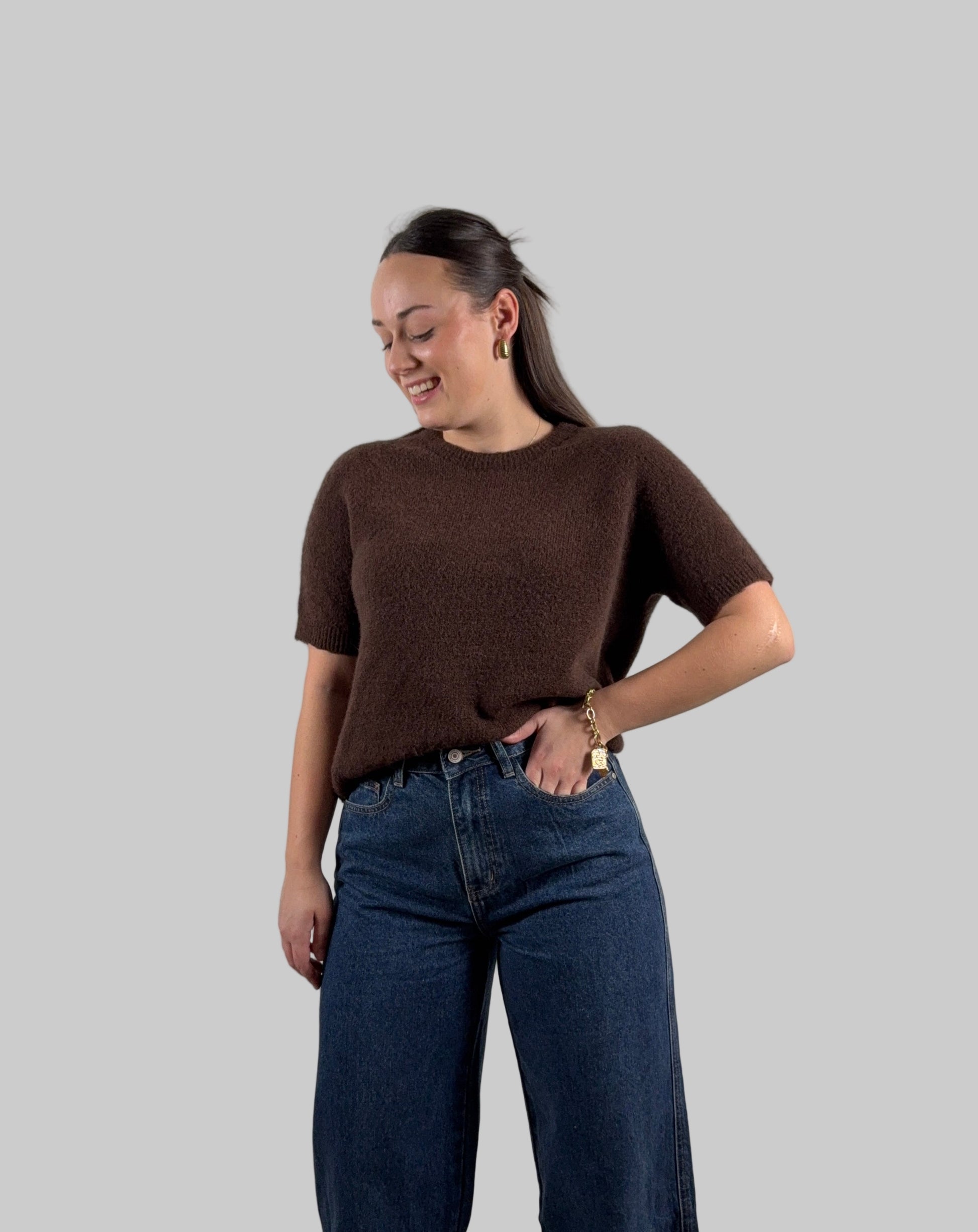 De Tess trui is cosy en heerlijk zacht door de woltextuur. Het korte-mouwenmodel maakt het ideaal voor laagjes of voor wie niet graag te warme knitwear draagt.